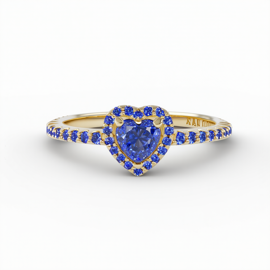 The heart-shaped ring with stones around it. You can choose your favorite stone color.